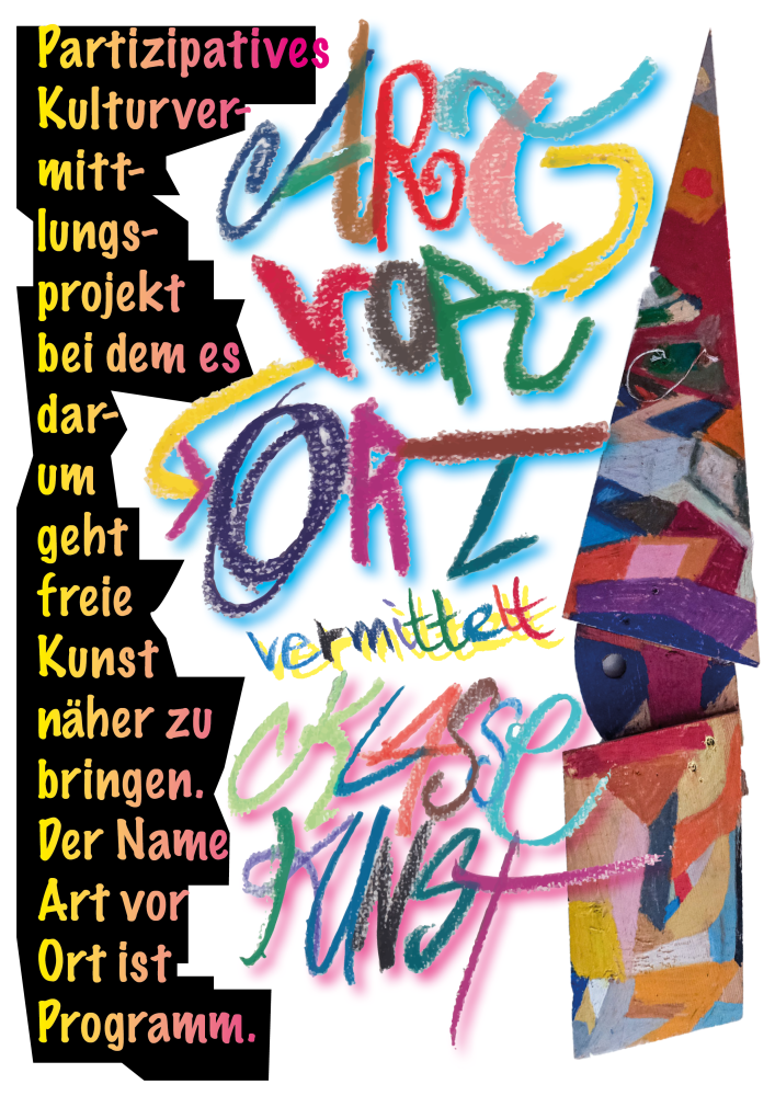 Unter dem Begriff „Art vor Ort“ biete ich diverse Kulturvermittlungsprojekte an. Mein Steckenpferd ist das Projekt „Kamishibai – Geschichten“. „Holzklag“, „Geschenkomat“, „Streetart“ und „Laut und Leise“ sind weitere Projekte, welche du hier einsehen kannst.